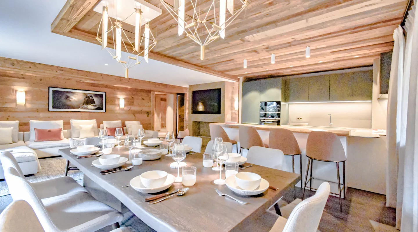 Situé au 3ème étage de la prestigieuse résidence Fleur des Alpes, le lot 303 incarne l’élégance et le confort d’un art de vivre en montagne. Avec une superficie appartement de 128m² + 21m² de terrasses et balcons, cet appartement T3 + 1 chambre multicouchages offre un espace généreux où volumes et lumière naturelle se conjuguent harmonieusement.